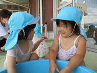 金魚すくいや水鉄砲を楽しみました。冷たい水の感触に大はしゃぎのぱんだ組さんでした!
