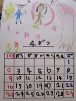 〇 年長さんからのプレゼントは、来年度のカレンダー。思い出の絵を描き、数字を書いて仕上げてくれた、世界でたった一つのカレンダーです。年長さんは自分の分と、保育所の各クラスの分を作ってくれました!