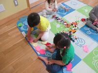 じっくりじっくり、指先を使ってボタンつなぎを楽しみました。指先も器用に使えるようになりました!