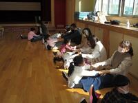 18名のうさぎ組さん。9名ずつ2つのグループに分かれて発表しました。