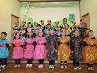 手作りの衣装を着て、劇の中の踊りや歌などを