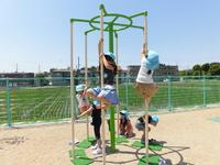 ジャングルジムに登ると、遠くまで見えて気持ちがいいね。
