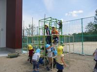 天気の良い日は、お友達と一緒に、園庭を元気に走ったり、登り棒にも挑戦しています。