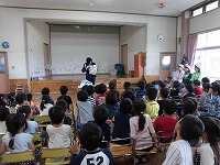 交通指導員の方から交通ルールについて紙芝居や