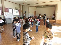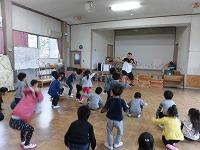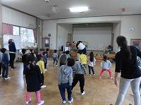 先生の元気な声に合わせて体をたっぷり動かすつき組さん。