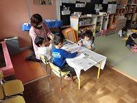 ほし組さんは、朝のカレンダー作り、なわとびやコマ回しに挑戦した後