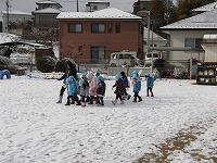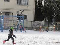 そら組さんは、園庭に積もった雪に大喜び。