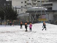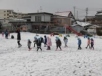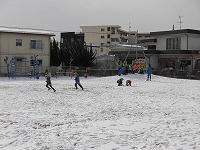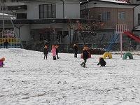 元気いっぱい戸外に出て、そり滑りや雪だるま作りをして楽しんでいました。