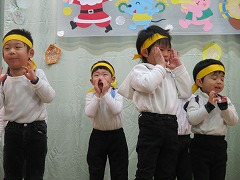 ほし組さんにとっては、保育所最後の「お楽しみ会」一生懸命頑張りました。たくさんの拍手もいただきとても良い思い出になったことでしょう。