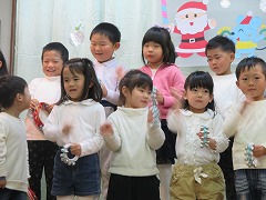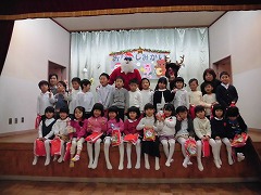 発表の後にはサンタクロースが登場し、大喜びの子供たちに、プレゼントを渡してくれました。本当に楽しい時間を親子で共有することができました。