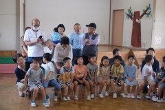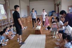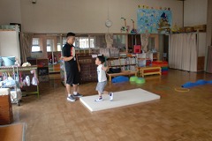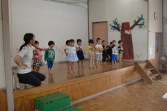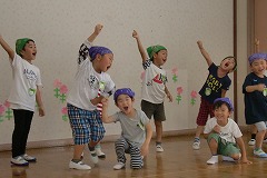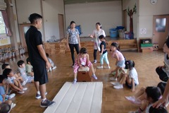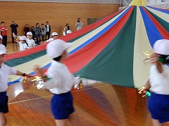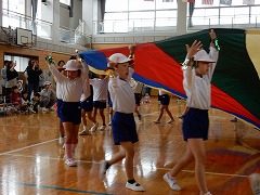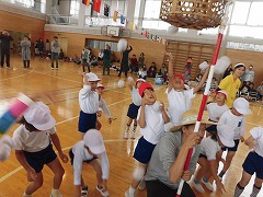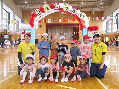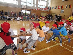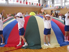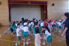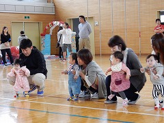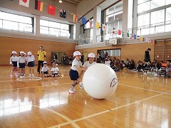 10月7日(土)に親子運動会がありました。残念ながら雨天のため「まゆみ小学校」の体育館で行いましたが、保育所の園庭と変わりなく、元気いっぱい親子で運動会を楽しむことができました。年長児、ほし組さんにとっては保育所での最後の運動会となりました。力の限り頑張りました。全員リレーでは感動的な場面が見られ、涙がこぼれました。子供たちや保護者の皆さんに、たくさんの拍手を送りたいと思います。お疲れさまでした。