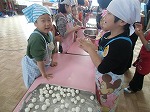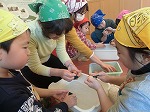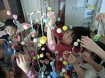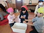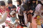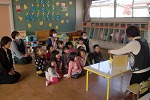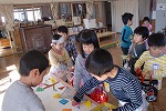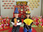 3月3日のひな祭りの日には、雛段飾りや自分たちの作った雛人形の前で、雛あられ