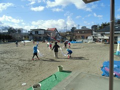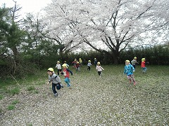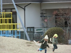3歳、4歳、5歳のクラスで凧を作りました。広い園庭で思いい切り走っていました。