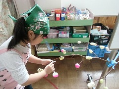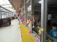 年長さんは結んで飾ります。 クラスの前の飾りました。