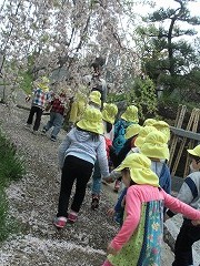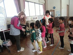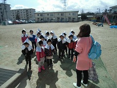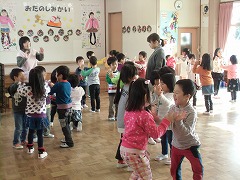 クラスごとにひなまつりのお祝いをしたあと年長組さんと年中組さんは、