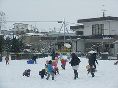 子どもたちは大喜びで、思いっきり雪で遊びました。