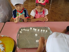 月の恵みに感謝して年長組みさん(ほしくみ)がだんごを作ってお供えしました。