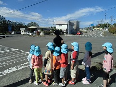 もうすぐ1年生のなる年長組さんは道路の歩き方や信号のある横断歩道の渡り方を