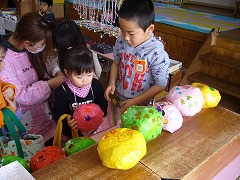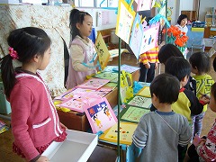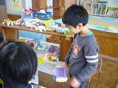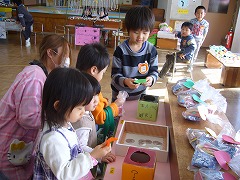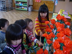 年長組さんが少しずつ準備を進めてきたお店屋さん・・・「喜んでもらえるかな?」と不安な様子でしたが、お店屋さんが開店すると、「お兄さん、お姉さんたちすごい・・・」と驚きの顔と、「うわーきれい」の喜びの顔に大満足でした。