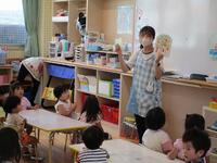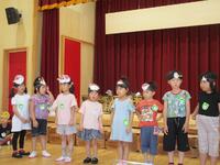 集合活動時に、「たなばたさま」の歌を歌ったり、ペープサートで七夕の由来を聞いたりしました。