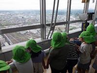 展望ロビーで、郡山市内を眺めました。新幹線が通るのを見たり、「人が小さく見えるねー」と様々な発見を見つけたりしていました。
