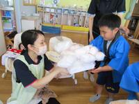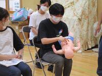 乳児・幼児用の人形を使用し、救命処置の流れを丁寧に教えていただきました。