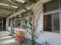 おうちの方に書いていただいた短冊を壁面に飾りました。