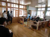 34名の新しい友達が入所し、担任から名前を呼ばれるとおうちの方と一緒にお返事をしたり、自分で手をあげたりする姿が見られました。