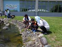 池には鯉が泳いでいました。鯉の色や大きさの違いに気づき、観察していました。