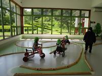 サーキットには様々な三輪車があり、コースを上手に走らせていました。