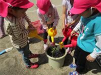 その後は友達と協力しながら、やさしく苗を植えたり、水をあげたりしました。