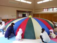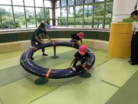 「げんきキッズパーク」で様々な遊びに挑戦したり、子供館でおうちの方と一緒にバルーンや体操、ゲームをしたりして体を動かしました。
