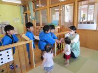 「ともだちいっぱい」の手遊びをしました。 先生やお友達と一緒に上手に手遊びをすることができました。