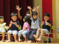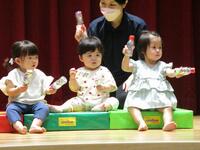 たくさんのお客さんに少し緊張している姿が見られましたが、名前を呼ばれると返事をしたり「トントントントンアンパンマン」の手遊びをしたりして元気に発表することができました。