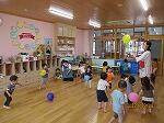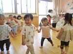 1曲目は『みずいろんだnight』2曲目は『忍たま音頭』です。大きな輪になって、みんなで一緒に踊りました。ひよこ組の子どもたちも、手を振ったり体を揺らしたりして、音楽を聴きながら楽しそうな表情でした。