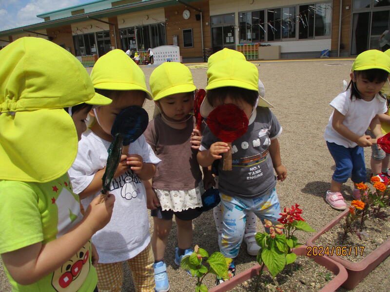 3歳児さくら組の一日を紹介しました。熱い夏も元気いっぱい過ごしているさくら組さんです。
