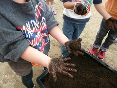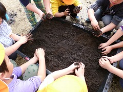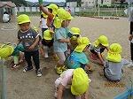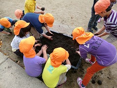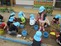 砂場遊びでは、お友達と一緒に楽しみながら「ケーキできたよ」「見せて」と、のぞき込んだり、玩具の貸し借りも「終わったら貸して」「もう少し遊んでからね」など言葉のやり取りもできるようになってきました。