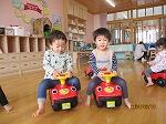 見立て・つもり遊びができるようになり、保育者や友達と一緒に遊びながら「はい、どーぞ」「かして」「いいよ」「まだ、だめ」など、やり取りができるようになりました。時には黙って持っていきトラブルになることも。保育者が丁寧に関わり方を知らせています。