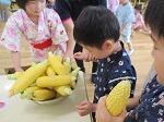 当日の朝も、トウモロコシの皮むきのお手伝いからスタートです。たくさんあったトウモロコシが、みんなで協力してあっという間に皮をむき、ひげも丁寧に取ってくれました。