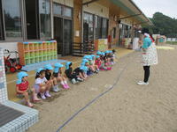 戸外遊びから帰ってくると、手を洗って、トイレに行き、水分補給してからお集まりをします。