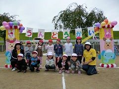 つばめ組さんが作ってくれた大きなこいのぼりが泳ぐ中、ゴールまでみんな一生懸命走ることができました。