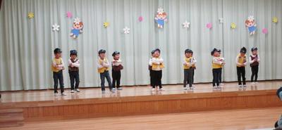 第1保育所では、施設が水害にあったことで、延期となっていたお楽しみ会を2月8日に実施することができました。各年齢ともに、1年間の成長を感じる発表となり、実施できたことが本当に嬉しく、職員一同大きな感動をもらいました。保護者の皆様はじめ多くの方々の励ましと、ご理解、ご協力があったからこそ、災害を乗り越え今に至ることができました。心より感謝しております。