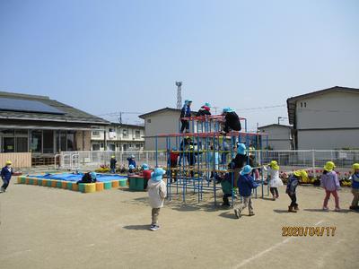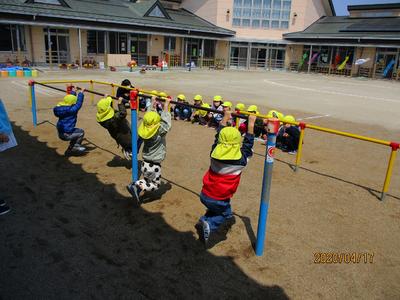 〇4・5歳児 ひばり組・つばめ組 戸外でのびのびと固定遊具や鬼ごっこを楽しみました!