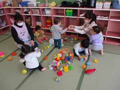 〇2歳児 あひる組 みんな泣かずに登所し好きな遊びを楽しんでいます!
