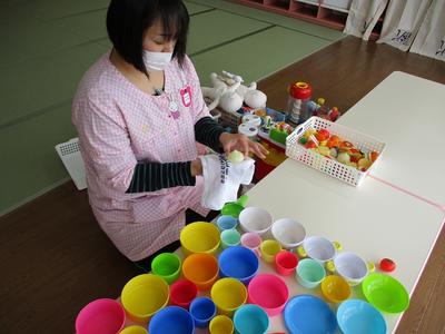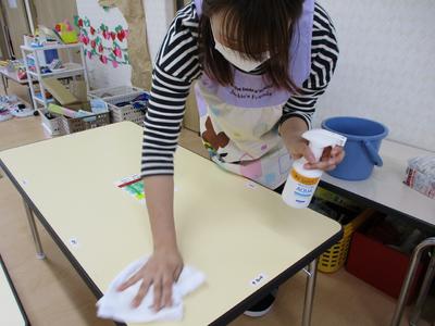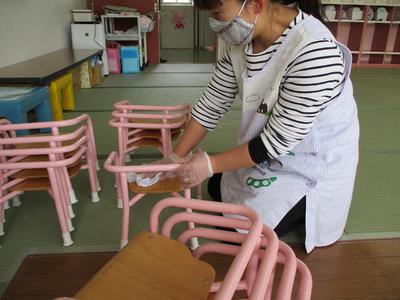 〇先週は、再度、保育室やテーブル、いす、玩具等を消毒し、迎え入れる準備をしていました。