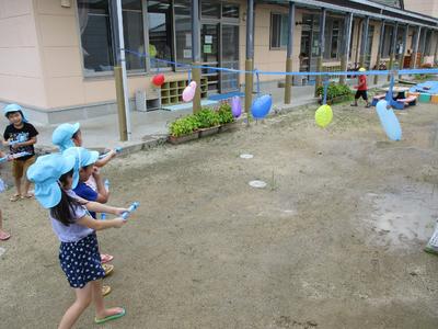 4、5歳児 水鉄砲で的あて。お化けや風船めがけて発射!