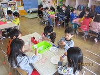 1月11日(金)に小正月の行事として、だんごさしを体験しました。豊作祈願、一家繁栄、豊かな生活などの願いを込めて、鯛や小判などの飾り、赤や緑、黄色、白のだんごをつくり、ミズキに飾りました。