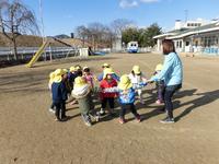 オハナおうえんじゃーとの交流会では、コマづくりを楽しみました。自分で色を染め作ったコマは、とてもきれいに回り大喜びでした。凧も作って園庭を駆けまわっています。