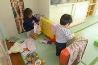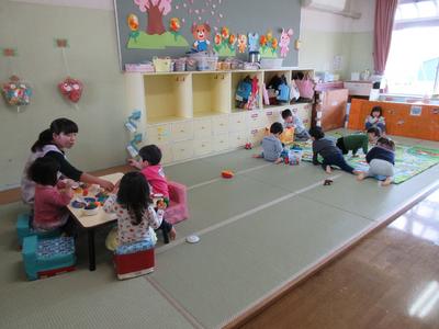 30名のひばり組さん。部屋は少し狭く感じますが、友達が増えたことで、それぞれのコーナー遊びも楽しく、ますます遊びが発展しそうです。