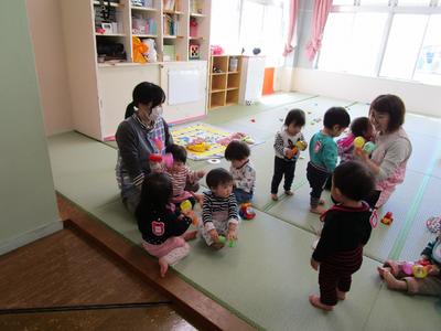 登所時に泣いていた新入児のお子さんも、少しずつ保育所生活に慣れてきて、笑顔で遊べる時間が多くなりました。絵本や手遊び、体操、散歩も楽しめるようになりました。